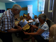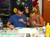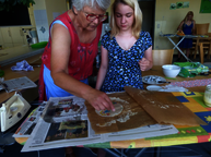 Am Mittwoch und Donnerstag wurden in Zweiergruppen Wachstücher in verschiedenen Größen und Formen, Honigpralinen sowie eine Quark-Fruchtspeise mit Honig hergestellt.