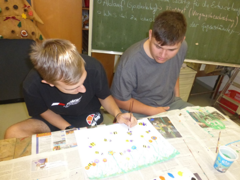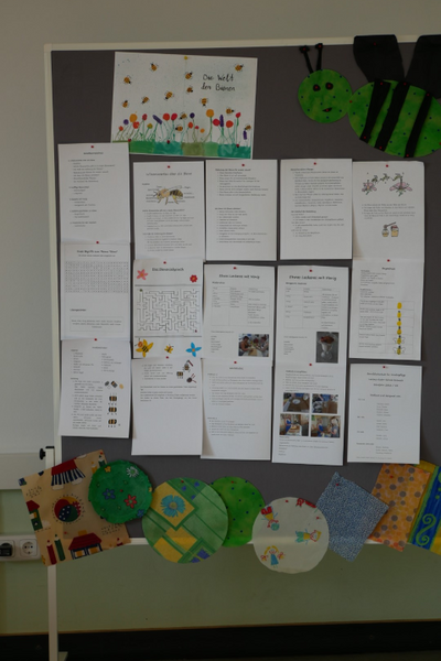 In den nächsten Tagen gestalteten wir in Kleingruppen mit verschiedenen Druckarten das Cover für unser Bienenbuch, erstellten Spiele und Rätsel und schrieben Anleitungen aus den Bereichen Gestaltung und Ernährung. Wir vervollständigten unser Buch mit selbstgemalten Bildern und kindgerechten Bienenrätseln.