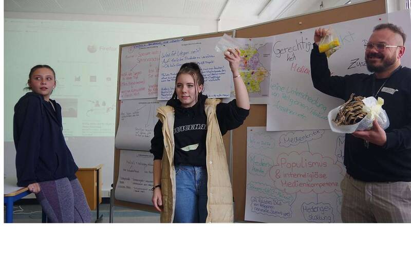 Die Stiftung begleitet in Bayern - unterstützt vom Bundesministerium für Familie, Senioren, Frauen und Jugend - an unterschiedlichen Schularten eine Reihe solcher Projekttage mit dem Schwerpunkt auf der Förderung demokratischer interkultureller und interreligiöser Kompetenzen. Nachdem 2018 bereits die Premiere der Veranstaltungsreihe für bayerische Berufsschulen in Kronach stattfand, wurde hier nun erneut ein mittlerweile insbesondere um den weltanschaulichen Aspekt erweiterter interreligiöser Projekttag abgehalten. „Wir haben den Anspruch, interreligiöses Lernen mit der Demokratiebildung bzw. politischen Bildung zusammenzubringen“, erläuterte Andreas Enders von der Stiftung die Hintergründe der Veranstaltung unter dem Motto „Verschiedenheit macht stark“. Als trialogisches Team bildete er mit der Rabbinerin Esther Jonas-Märtin sowie Dr. Selcen Güzel, Lehrbeauftragte für islamische Religionspädagogik, die drei Weltreligionen Christentum, Judentum und Islam ab, deren Parallelen und Gemeinsamkeiten, aber auch Unterschiede und Gegensätze in anschaulicher Art und Weise aufgezeigt wurden.